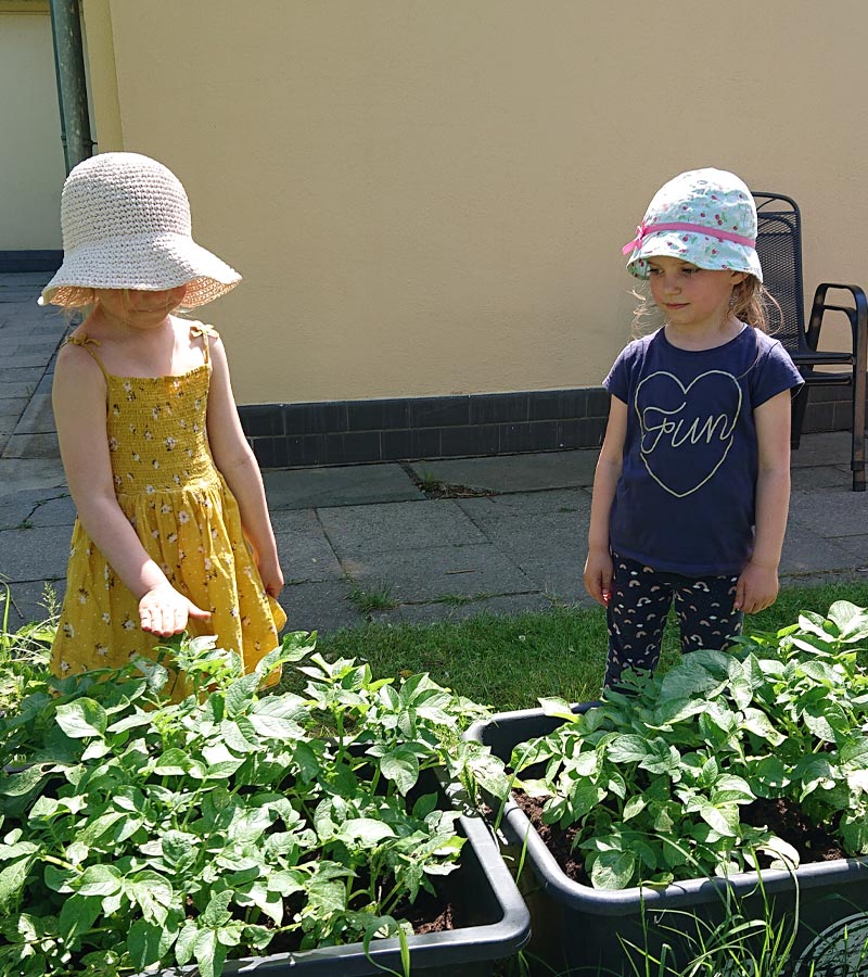 Guck mal, das sind die Kartoffeln. Wow sind die schon groß geworden!