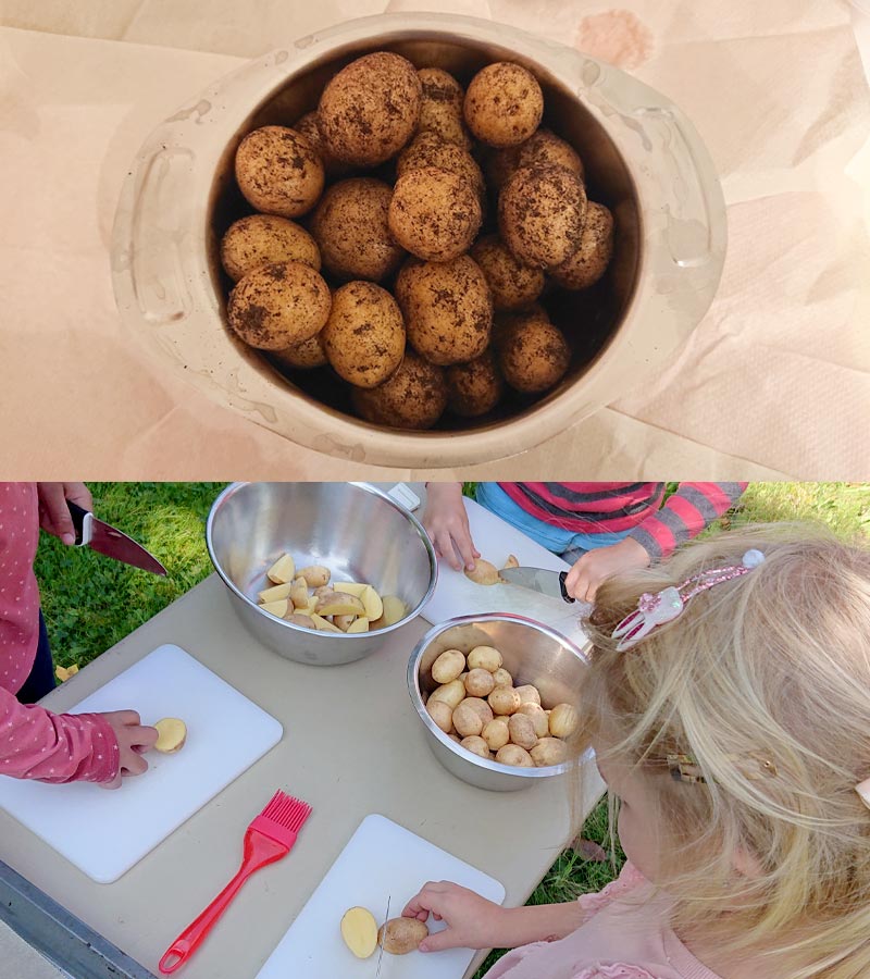 Heute haben wir unsere eigenen Kartoffeln verarbeitet und gegessen. Dazu mussten diese zuerst geputzt und geschnitten werden.