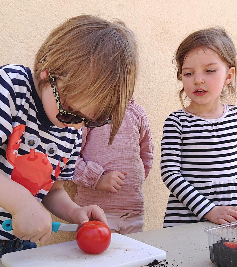 Wir haben die Tomaten aufgeschnitten und im Inneren die Samen gefunden.