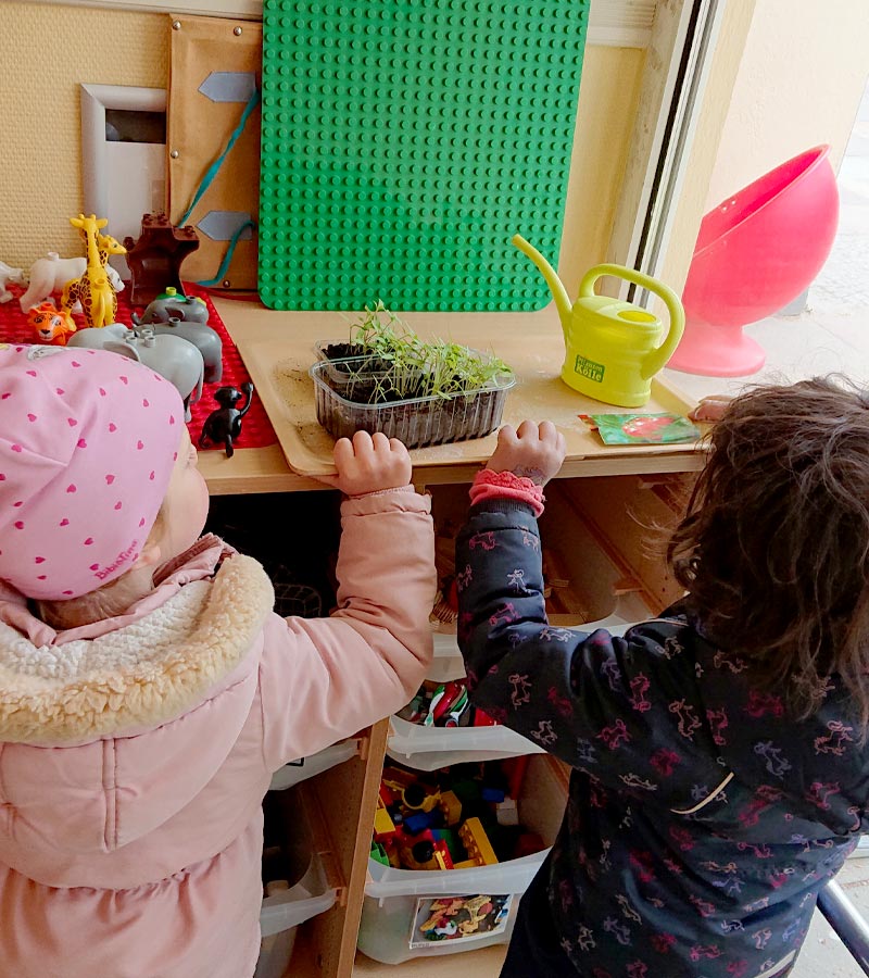 Den Kindern ist aufgefallen, dass die Pflanzen schief wachsen.